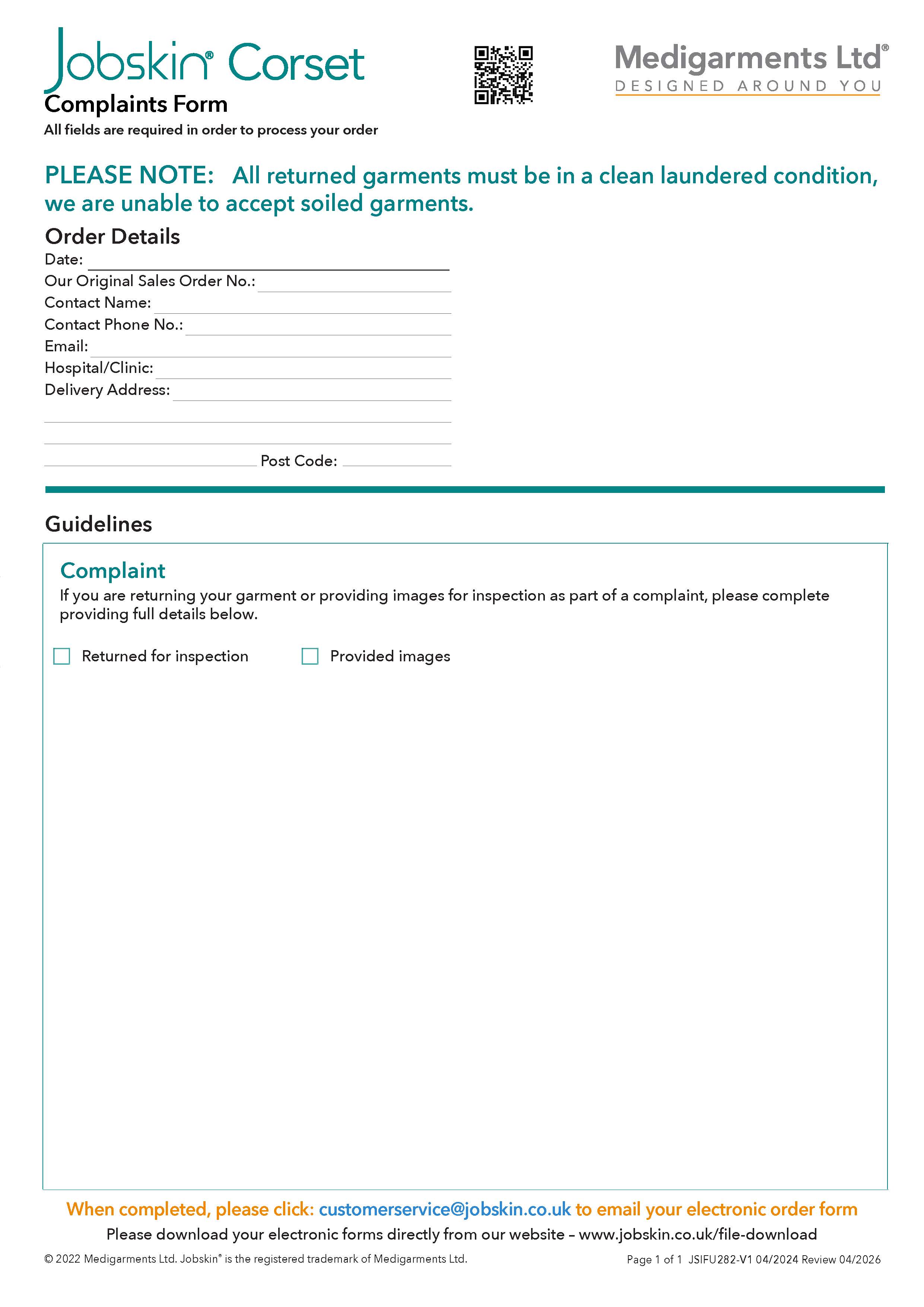 | Jobskin® Corset Complaints Form – Electronic PDF File, 234 KB |